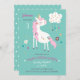 Esse doce Convite de aniversário apresenta um caráter Unicórnio giro e outros elementos quimicos como nuvem, flores e estrelas. O design festivo é ideal para uma festa com tema de Unicórnio. Este cartão de visita é perfeito para uma criança jovem e feliz.