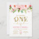 Uma bela pequena senhorita, um maravilhoso primeiro convite de aniversário, com disposições florais cor-de-rosa e algumas palavras falsas de folha de ouro e faixa. Excelente para alguém que gosta de arte em aquarela e ideal para uma garotinha na primeira festa de aniversário.