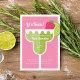 Fiesta! Convites de festas de aniversário bonitos apresentam um coquetel margarita verde limão gelado com detalhes de sua festa em letras brancas, em um fundo rosa tropical vibrante. "Fiesta de Vamos!" aparece no topo; ou mude para o título personalizado.
