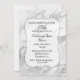 Convite de aniversário de casamento de vigésimo quinto ano elegante feito com uma aparência de mármore branco e prata, com uma área de texto decorativa branca. Personalize todo o texto para a sua celebração.