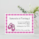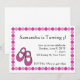 Estes convites para festas de aniversário apresentam calçados cor-de-rosa e uma borda de bolha rosa quente. Corresponde à nossa linha de favores de festa de aniversário no GCDSpa.com. Os autocolantes e os cartazes também estão disponíveis.