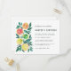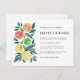 Este convite de aniversário adulto moderno apresenta limões de aquarela, limões, laranjas, toranjas rosadas e folhagem verde. À direita há uma tipografia de festa de aniversário na moda com suas informações personalizadas. A parte traseira deste convite de cartão postal foi deixada em vazio para que você possa escrever uma mensagem personalizada e adicionar um endereço.