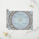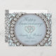 Um convite de aniversário com monograma em coração azul turquesa. Há diamantes em forma de coração e você pode adicionar iniciais dentro dos corações de diamante prateados no centro. O anel de ornamento de diamantes ao redor da mensagem "Feliz Aniversário" representa o círculo interminável do amor. Nota: O cartão é uma impressão gráfica e não contém diamantes ou glitter. Tenha um evento MARAVILHOSO!!!