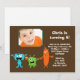 Esse convite de aniversário de monstros fofo é perfeito para uma festa de aniversário, ou a qualquer hora. Apresenta três monstros coloridos de desenho animado com chapéus de aniversário e um cupcake festivo. Personalize este convite com sua foto e detalhes da festa. Faz um excelente da tua festa que podes guardar durante anos. Design Babystar