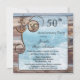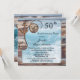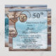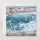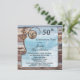 Um convite de festa de aniversário com tema náutico com ondas do oceano emolduradas por madeira rústica desgastada, uma âncora e um nó amarrado em forma de coração.