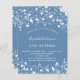Fundo azul-acinzentado, decorado com estrelas brancas. Personalize e adicione seu nome e detalhes da festa.