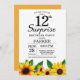 Convite de Aniversário para 12 de Surpresa de Girassol. Flores Florais e Fundo Branco. Retro De Vintagem Do País. Garotas Aniversário. 15 12 13 16º 18º 20 21rua 30 40º 50º 60º 70 90 100º, qualquer idade. Digital Imprimível.