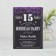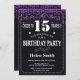 Convite de Aniversário para 15 de Glitter Roxo. Tipografia Branca. Fundo do quadro negro e branco. Aniversário de criança. Homens ou Mulheres Aniversário. Menino ou Menina Menina Menina Adolescente Convidam. 13 15 de 16º 18º 20 21rua 30 de 40º 50º 80 de 60º 70 de 100º. Qualquer Idade. Para mais personalização, clique no botão "Personalizar" e use nossa ferramenta de design para modificar este modelo.