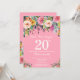 20 de Aniversário da Surpresa Floral Rosa, Convite para Mulheres. Flor Floral de Aquarela. Fundo Rosa. Rosa, Amarelo, Laranja, Flor Roxo. Aniversário Adulto. 13 15 16º 18º 20 21rua 30 40º 50º 60º 80 de 70 100º, qualquer idade. Para mais personalização, clique no botão "Personalizar" e use nossa ferramenta de design para modificar este modelo.