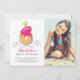 Doce Sorvete de celebração número seis com aspersores para um aniversário de 6 de Meninas. Fácil de personalizar com as suas informações de fotografia e festa. Sacudir nosso convite para ver um plano de fundo cor-de-rosa para um toque especial extra.