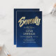 Um design ousado para o seu grande dia. Este design de convite de aniversário para homens adultos apresenta texto ousado em ouro sobre fundo de marinho. Perfeito para o pai ou aniversário do marido. Solicite seus convites impressos e suprimentos de festas ou faça o download de seus convites digitais agora por um dia que eles nunca esquecerão!