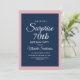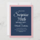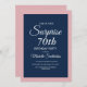 Convite de aniversário de 70 surpresa, rosa e azul-marinho moderno, personalizado com o nome do convidado de honra e sua informação de partido. As cores desta placa são totalmente personalizáveis quando você usa as ferramentas do design Zazzle.