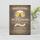 Cheers and Beers Surprise 70 Birthday Invitation Card com fundo de madeira rústica. Para mais personalização, clique no botão "Personalizar" e use nossa ferramenta de design para modificar este modelo.