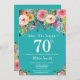 Teal Floral Surprise 70 de Aniversário Convite para Mulheres. Flor Floral de Aquarela. Teal Aqua Turquoise. Rosa, Amarelo, Laranja, Flor Roxo. Aniversário Adulto. 13 15 16º 18º 20 21rua 30 40º 50º 60º 80 de 70 100º, qualquer idade. Para mais personalização, clique no botão "Personalizar" e use nossa ferramenta de design para modificar este modelo.