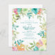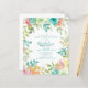 Novo para o Verão de 2024. A cor da água floral de Verão moderna e colorida apresenta flores cor-de-rosa, azuis-turquesa, amarelas e laranja. Eles formam uma estrutura botânica, rústica e bófia em torno de seus detalhes de festa de aniversário. Este item faz parte da coleção de Flores de Aquarela de Verão. Contém modelos de convite, sinais de boas-vindas e decorações de festas.