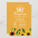 Convite de Aniversário para 90 de Surpresa de Girassol Flores Florais e Fundo Amarelo Retro de Vintagem do País. Mulheres Aniversário. 15 de 12 de 16º 20 de 18º de 13 21rua 30 de 40º de 50º de 60º de 70 90 de 100º de qualquer idade. Digital Imprimível. Para mais personalização, clique no botão "Personalizar" e use nossa ferramenta de design para modificar este modelo.