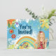 Rapariga de Hippy loira da paz personalizada com Flores Coloridas, Sinal de Paz e Convites de festas de aniversários de fundo do Rainbow.