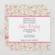 O topo e o fundo ilustram um lindo padrão floral, flores a rosa e pêssego com folhas verdes. No centro, você pode substituir os textos existentes pelas informações de sua parte. O plano de fundo apresenta o mesmo padrão floral.