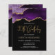Este convite de aniversário de 90 de tendências apresenta uma imagem de aquarela de um geode agado em tons de roxo com realces de ouro falsos. As palavras "90 Birthday" aparecem na falsa brilha dourada em letra decorativa moderna de escrita manual. Personalize-o com o nome do honroso em texto dourado e os detalhes em branco. A mesma imagem de agata roxa aparece no lado oposto.