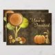 ~Este charmoso convite de aniversário para animais florestais de outono apresenta um belo coelho com uma bela abóbora e uma raposa dormindo perto de cogumelos bonitos sob uma árvore de outono retrô.