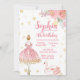 Chamada de bailarina de cisne cor-de-rosa-d'água, brilho dourado, para aniversariante. Convite de balé de aniversário. Edite o texto importante imediatamente no zazzle. Pode fazer download instantaneamente para usar a imagem para compartilhar digitalmente ou impressão mais rapidamente. Não é necessário esperar que o designer adicione texto. Você também pode alterar fontes e cores de texto.