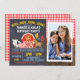 Esta fotógrafa fofinha juntando-se ao convite de aniversário de barnyard apresenta um celeiro vermelho, um porco, uma vaca e um cavalo. O plano de fundo é uma imagem digitalizada do quadro de reflexão de um lado do convite. A fotografia do seu filho aparece num quadro branco no lado direito. Esta é uma maneira fofa de convidar os amigos de seus filhos para a festa de aniversário do tema do barnyard deles. Este convite de aniversário comum de barracão é adequado para uma gama de idades e está pronto para ser personalizado.