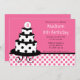 Comece sua festa com nosso lindo convite de aniversário apresentando um adorável bolo de polca preto e branco de três camadas em um fundo rosa. Garantido para colocar um sorriso no seu rosto. Perfeito para qualquer Festa de aniversário etária! Apenas personalize com suas informações e você está pronto para ir! Itens correspondentes, incluindo selos de postagem de aniversário, adesivos de favoritos, cartões de agradecimento e obrigado que você também está disponível em nosso compro.