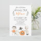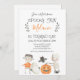 Convite de Aniversário do Dia das Cinzas Laranja Um convite de aniversário de cor aquática moderna, do Dia das Bruxas, com seis caracteres bonitos, em laranja, branco e cinza. Esta doce design é certamente a cena para a festa de aniversário temática do Dia das Bruxas de uma criança e é moderna no estilo.