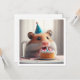 Uma ilustração super fofa de um hamster comendo um bolo de aniversário e vestindo um chapéu de festa. Esta é a carta perfeita para amantes de hamster e amantes de pequenas criaturas. O cartão pode ser totalmente editado e personalizado de acordo com as suas necessidades.