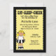 Convites de aniversário de Cheerleader giro. O convidado tem um cheerleader loiro bonito com uma saia branca e preta. Personalize com os detalhes do seu partido.