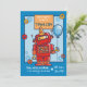 Comemore o aniversário do seu filho com este convite divertido e colorido para robôs. Este design apresenta um robô fofo com um chapéu de festa e balões, juntamente com uma área de texto personalizável onde você pode adicionar seus próprios detalhes. Quer seu filho ame ciência, tecnologia, ou apenas robôs, este convite é para fazê-los sorrir.