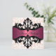 Convite de Aniversário do Elegant Hot Pink & Black Floral Damask