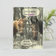 Diversão de cavalo, ou fazenda temática, convite de festas para meninas. Dois cavalos marrons estão "falando" na frente e dizem, "É uma festa para (nome aqui)" e "Somos convidados?" em bolhas de fala. Na parte traseira da placa plana, personalize o texto impresso roxo com todas as informações da parte. Uma garota andando a cavalo é a imagem de fundo.