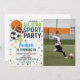 Celebre sua estrela com este convite de aniversário desportivo! Apresentando ilustrações coloridas de futebol, futebol, beisebol e basquete, este design divertido e enérgico é perfeito para crianças que amam o esporte. Personalize com o nome, a idade e os detalhes da festa do seu filho para criar um convite de tipo único que inicia o entusiasmo. Excelente para rapazes, raparigas e festas de esporte de coação. Impresso em papel de alta qualidade e entregue rapidamente — este convite é uma escolha vencedora para os pais planejarem uma celebração esportiva!