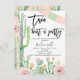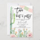 Festa colorida Pastel Fita Taco Verde Rosa Festa de Aniversário Convite Pastel Fita temida Taco sobre um convite de aniversário de uma festa com cacto florescente e faixa mexicana em rosa e menta. Ideal para alguém à procura de um convite de aniversário temático da Festa fêmea.