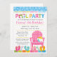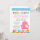 Convite de Aniversário para Festa na Piscina em rosa, verde e azul
