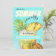 Convite de aniversário tropical comemorativo com um fundo de cocktail pina colada.