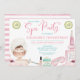 Rapariga Produtos de Beleza Festa Spa Aniversário Convite à festa do spa da menina Doce convite para o aniversário com uma menina cabeleira, título de caligrafia rosa, vários produtos de beleza, fatias de pepino e flores. Este convite de aniversário do spa é ideal para uma próxima festa de aniversário spa.
