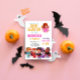Festa de Figurino de Halloween Convite de Aniversário Convidado para celebrar seu aniversário de Halloween. Convide pessoas para a sua festa com este design incrível. Gato bonito saindo da abóbora com faixa de halloween, luas e morcegos é uma combinação tão excelente para o aniversário das crianças!