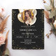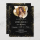 Um convite moderno, na moda e glamouroso para uma festa de aniversário 21 (ou qualquer idade). Um fundo preto, decorado com faxes de brilho dourado e balões de ouro. Personalize e adicione seu nome, foto e detalhes da festa. Um quadro fotográfico estilo balão. 1 folha = 1 convite impresso de borda a borda