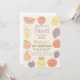 Celebre em estilo suculento e vibrante com este convite de aniversário de fruta tropical! Apresentando ilustrações coloridas de abacaxi, melancia, laranjas e fatias de citros, esta design de verão é perfeita para aniversários infantis, festas de piscina ou reuniões de luau. Totalmente personalizável com seus detalhes de eventos, é uma maneira nova e divertida de convidar convidados para uma celebração ensolarada. Impresso em estoque de cartão de alta qualidade e disponível com envelopes correspondentes para um conjunto completo de partes.