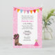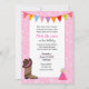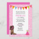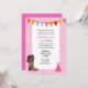 Convites de aniversário cor-de-rosa para vaqueiras com um chapéu de vaqueiro cor-de-rosa, faixa colorida, chapéu de festa e bota. O fundo é uma bandana cor-de-rosa. Tema ocidental só para garotas.