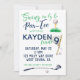 Faça seu aniversário um buraco em um com uma festa temida de golfe. Personalize este convite de festas de golfe com todos os detalhes do seu partido.