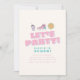 Aumente a diversão com este vibrante e brincalhão convite de aniversário "Vamos Festa!", perfeito para celebrar seu na moda e seu filho espirituoso! Apresentando tipografia ousada, rosa-borbulha e ícones alegres como tênis, sol, arco-íris e material escolar, este design de dois lados traz energia e alegria a qualquer celebração. Personalize com o nome, a idade, a data da festa, a hora, a localização e os detalhes de RSVP. Fornecido como um download digital, é fácil impressão ou compartilhar on-line — fazer partidário planejando uma brisa e o especial extra de celebração!