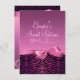 Este Convite de Aniversário do Elegante Sweet XVI apresenta um padrão de zebra rosa e preto e um arco em um fundo rosa-quente. Personalize-o adicionando seus detalhes na fonte de sua escolha!
