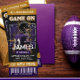 DOWNLOAD DIGITAL DISPONÍVEL. Prepare-se para iniciar uma festa de aniversário épica com este convite temático de futebol roxo e dourado! Perfeito para os fãs de Baltimore que sangram roxo e vivem a energia do dia do jogo, este convite apresenta um jogador de futebol ousado com um uniforme roxo e preto impressionante, pronto para marcar um touchdown na sua celebração. Ideal para festas estilo tailgate ou reuniões para assistir ao jogo, este design captura o coração do orgulho do futebol de Baltimore. Personalize-o para qualquer idade e faça do seu aniversário uma jogada vencedora!