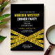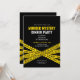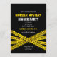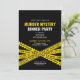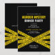 Convite de aniversário de Mistério de Assassinato com design contemporâneo de fita policial. Design branco e amarelo.