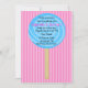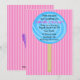 Comece a comemorar com este lindo e adorável convite de aniversário para garotas. É um grande pirulito azul brilhante num fundo escuro e com rosas claro listradas. Veja as muitas outras cores e designs nesta linha. Além disso, muitos outros produtos, como camisas, cartões de agradecimento, cartazes e muitos outros. © Ilustrações JW