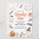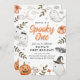 Adorável convite de aniversário da aquarela Halloween com fantasmas doces, abóboras e sotaques pastel assustadores. Perfeito para festas de fantasia infantil e festas de outono.