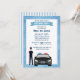 Convite de aniversário para um oficial de polícia masculino. O design tem um carro de polícia e um oficial de polícia masculino com as palavras você é convidado para uma festa de aniversário. Fácil de personalizar com os detalhes da sua festa. Adicione o nome do departamento nas etiquetas do carro.